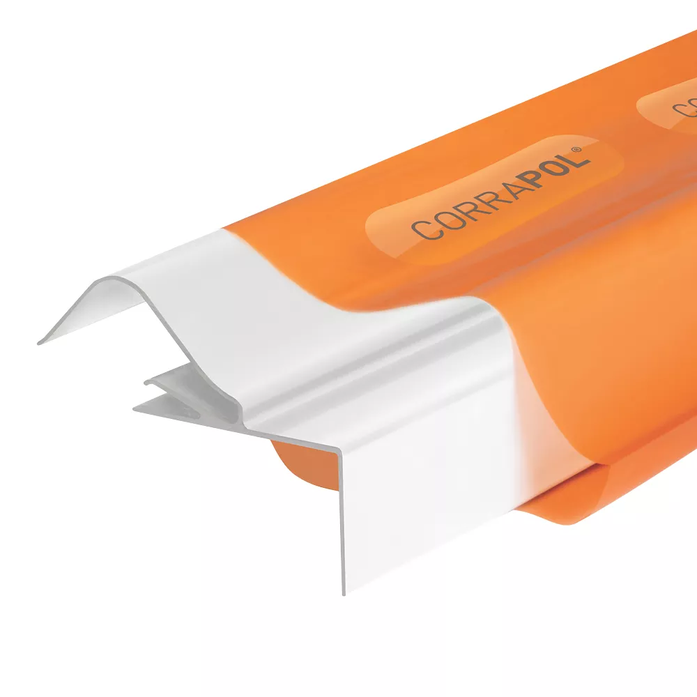 Aluminium side flashing for use with corrugated sheets. ‘Rock n Lock’ the flashing onto the end corrugation of Corrapol clear sheets for fast, easy and secure installation. Extruded from aluminium, providing longevity and superior protection for Corrapol clear sheets.