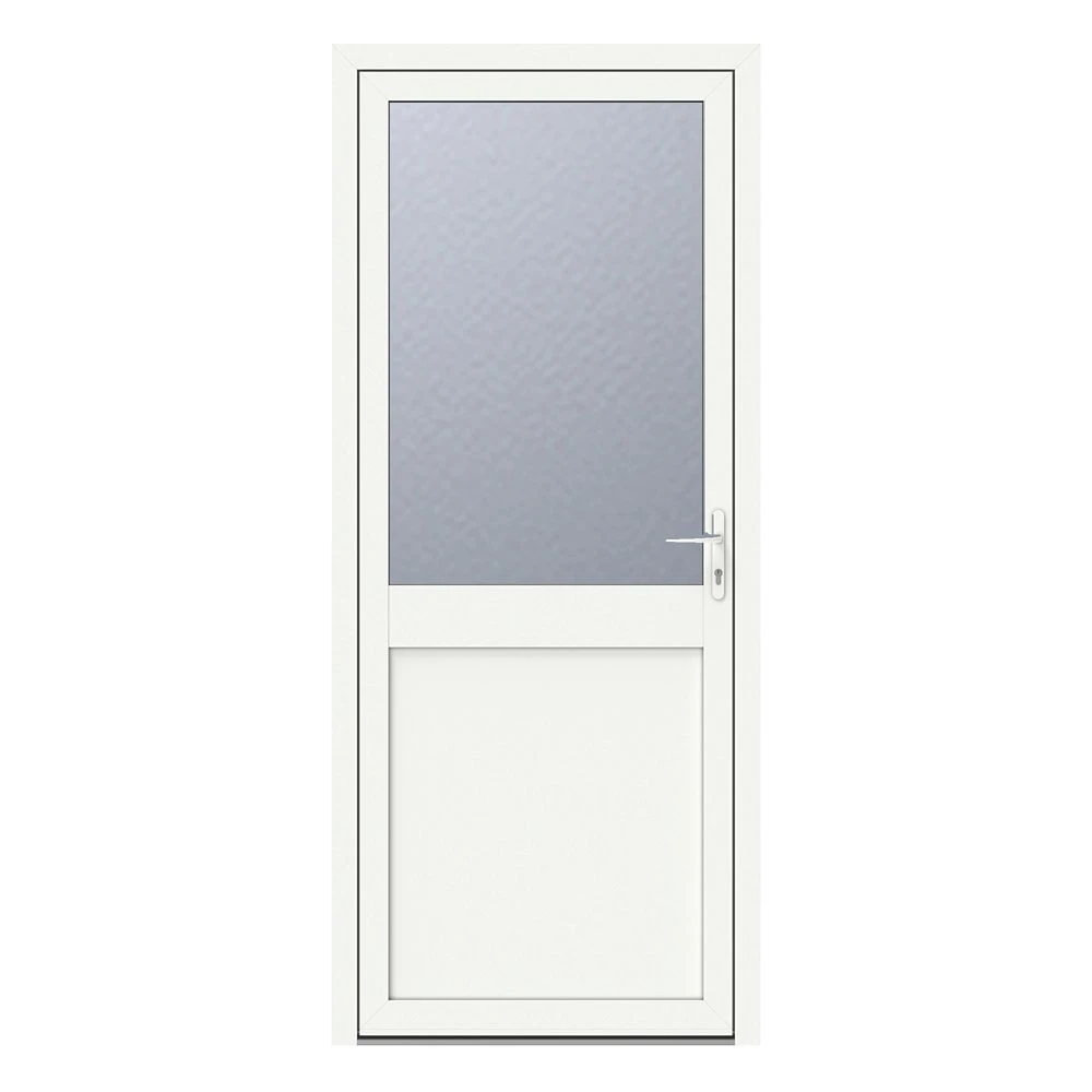 Residential exterior door with a thermally-broken aluminium frame profile. Engineered for strength and security. Fitted with a multipoint locking system and a double-glazed window.