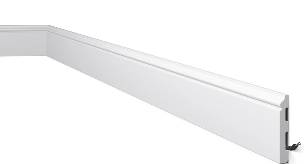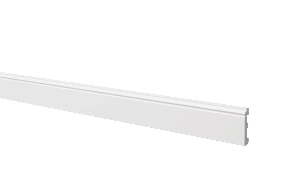 Super tough high density polymer ogee-style skirting board. Quick and easy installation. Ideal for concealing cables.