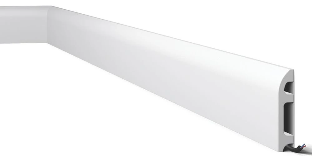 Super tough high density polymer rounded skirting board. Quick and easy installation. Ideal for concealing cables.