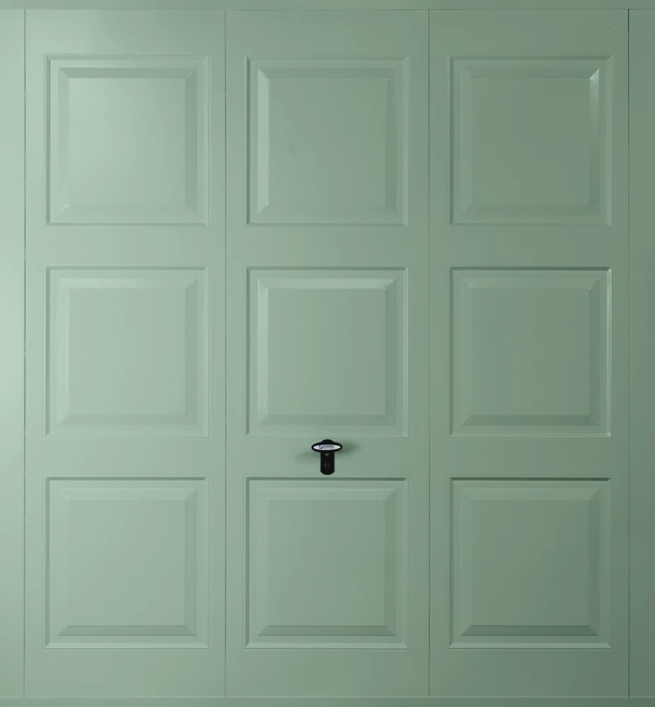 Reliable, strong and secure door that will look good for years to come with the minimum of effort. Manual operation with anti-drop safety device. Opening must have an additional 50mm each side and 50mm height for the frame, therefore overall size is 2386mm W x 2031mm H.