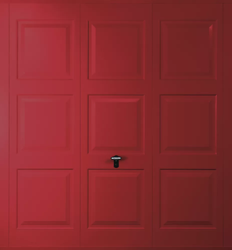 Reliable, strong and secure door that will look good for years to come with the minimum of effort. Manual operation with anti-drop safety device. Opening must have an additional 50mm each side and 50mm height for the frame, therefore overall size is 2386mm W x 2031mm H.
