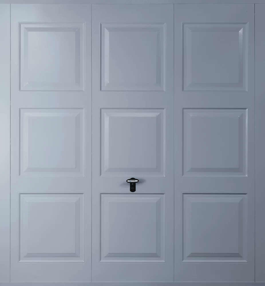 Reliable, strong and secure door that will look good for years to come with the minimum of effort. Manual operation with anti-drop safety device. Opening must have an additional 50mm each side and 50mm height for the frame, therefore overall size is 2538mm W x 2184mm H.