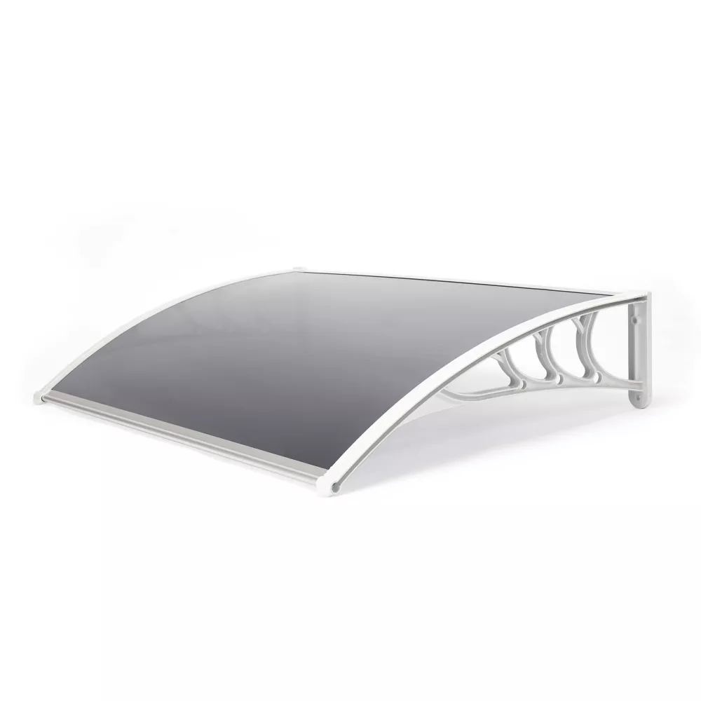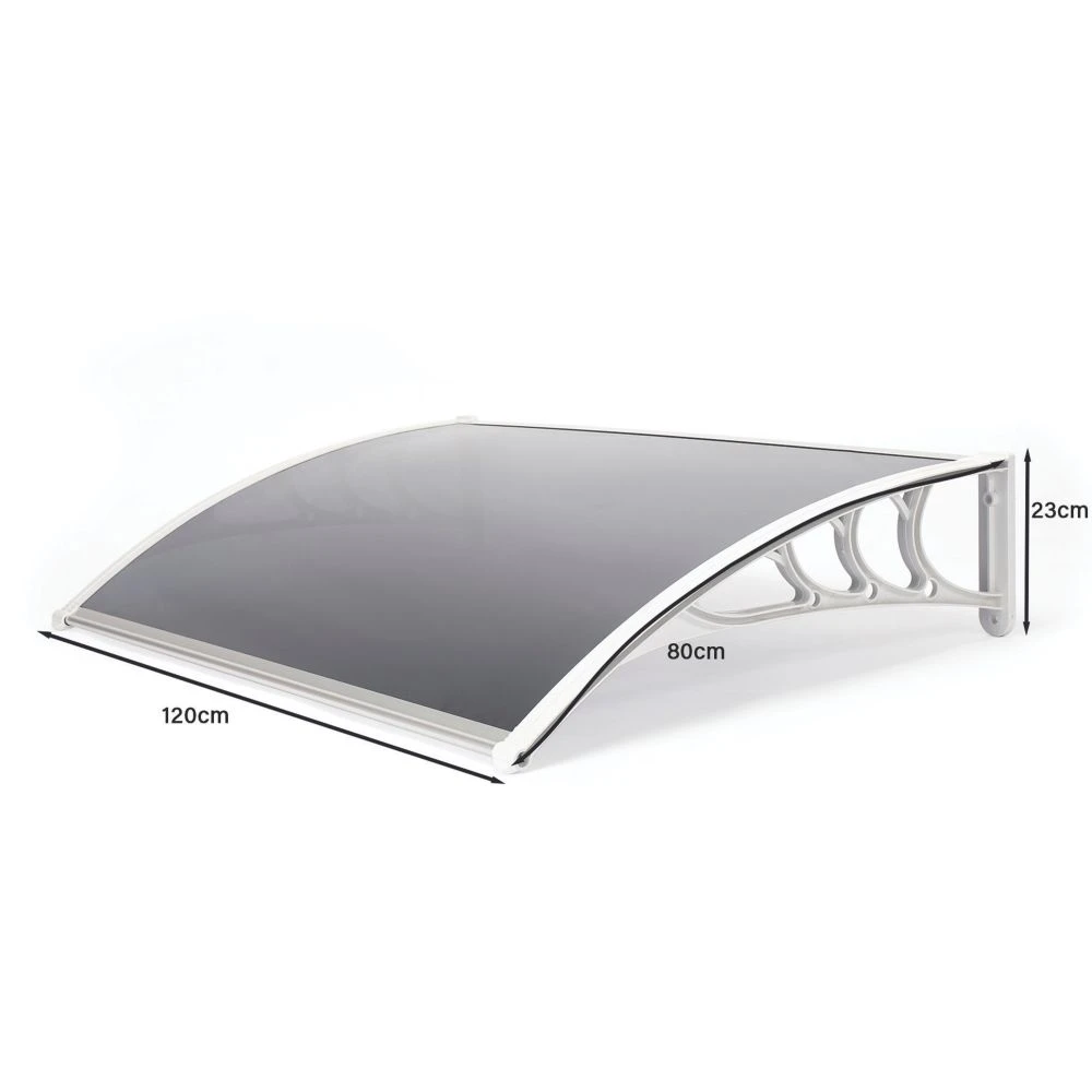 Lightweight, yet durable, door canopy that provides cover from both sun and rain. Features heat reflecting UV-stabilised polycarbonate cover and high impact-resistant side brackets. Aluminium front and rear profiles with a rubber seal at the back ensure a secure fit. Supplied with wall fixings.