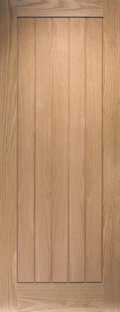 American white oak veneer over particle board with vertical lines. Can be trimmed by 5mm from all 4 edges.