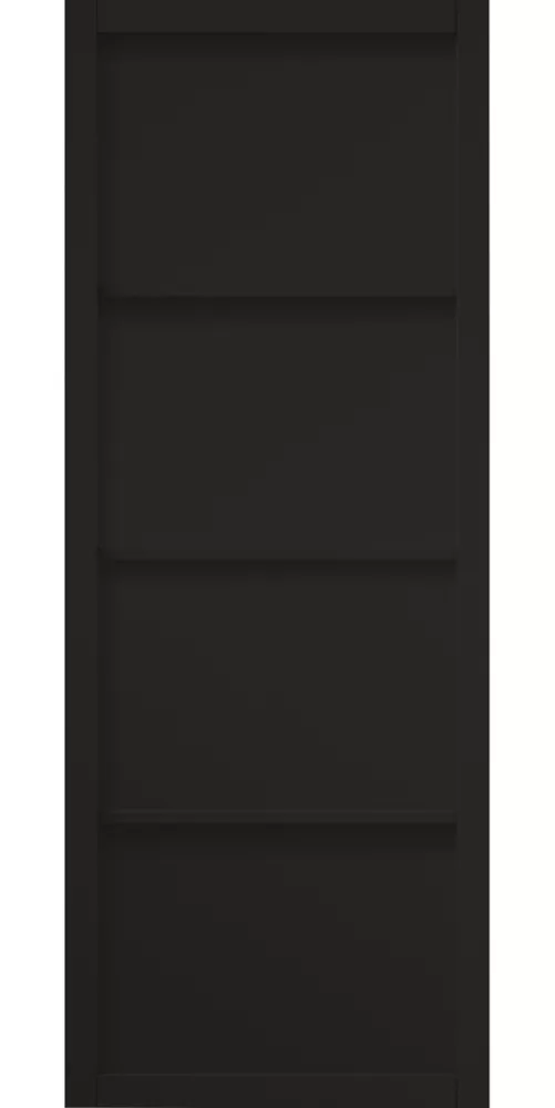 Striking, contemporary slimline door, ideal for modern apartments and homes. Fits most existing door frames. Solid core for a premium feel. Striking black paint finish.