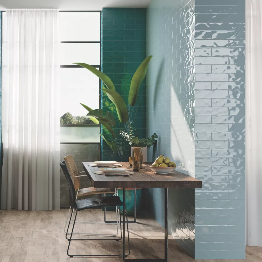 Suitable for walls in home or commercial spaces. Features glazed gloss coating and combines perfectly with wood, stone or rustic-style flooring.