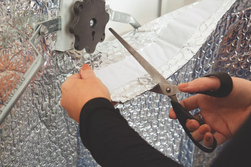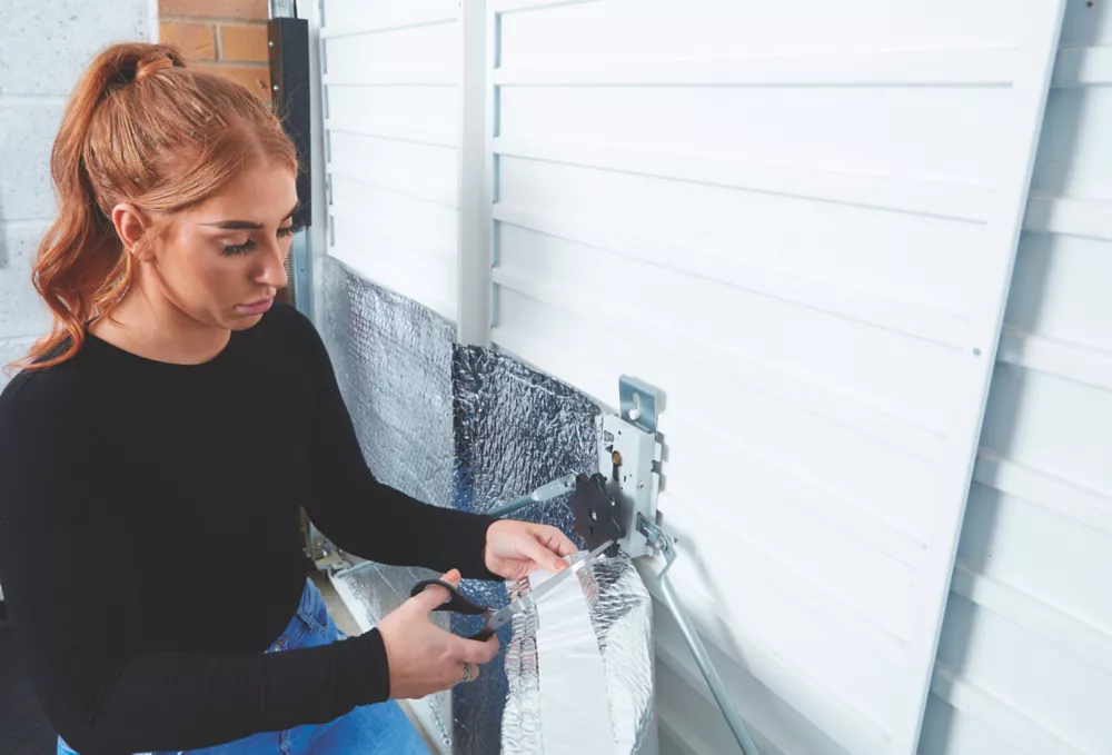 Lightweight and durable thermawrap garage insulation. Equivalent to 55mm of polystyrene insulation. Keeps garages warmer in the winter and cooler in the summer. Sticks to smooth, rough and uneven surfaces, including wood, metal and plastic. Easily wiped clean. Suitable for multiple garage door types.