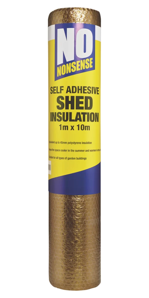Fungi and mould-resistant thermawrap shed insulation. Equivalent to 45mm polystyrene insulation.Sticks to smooth, rough and uneven surfaces, including wood, metal and plastic. Suitable for all types of garden buildings. Can be fitted to new or existing sheds.