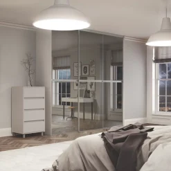 Spacepro Minimalist 4-Door Sliding Wardrobe Door Kit Silver Frame Grey Glass Panel 3024 X 2260mm