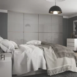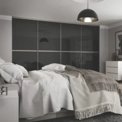 Spacepro Minimalist 4-Door Sliding Wardrobe Door Kit Silver Frame Grey Glass Panel 2416 X 2260mm