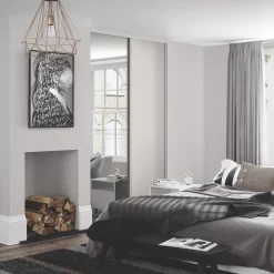 Spacepro 4-Door Sliding Wardrobe Door Kit Dove Grey Frame Mirror Panel 2898 X 2260mm