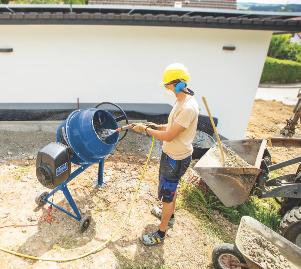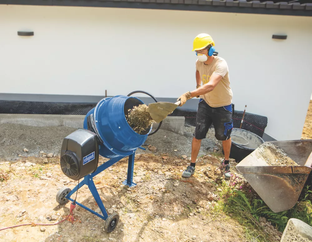 Powerful, durable 550W cement mixer. Features rugged, all-steel construction, large capacity welded steel mixing drum with cast iron gear ring for increased strength, and large drum wheel for easy tipping. Also features variable fixed mixing positions, lifting handle and transport wheels for mobility. Enclosed splash safety motor housing. Ideal for both DIY and medium sized building projects whilst offering contractor performance. Minimum maintenance.