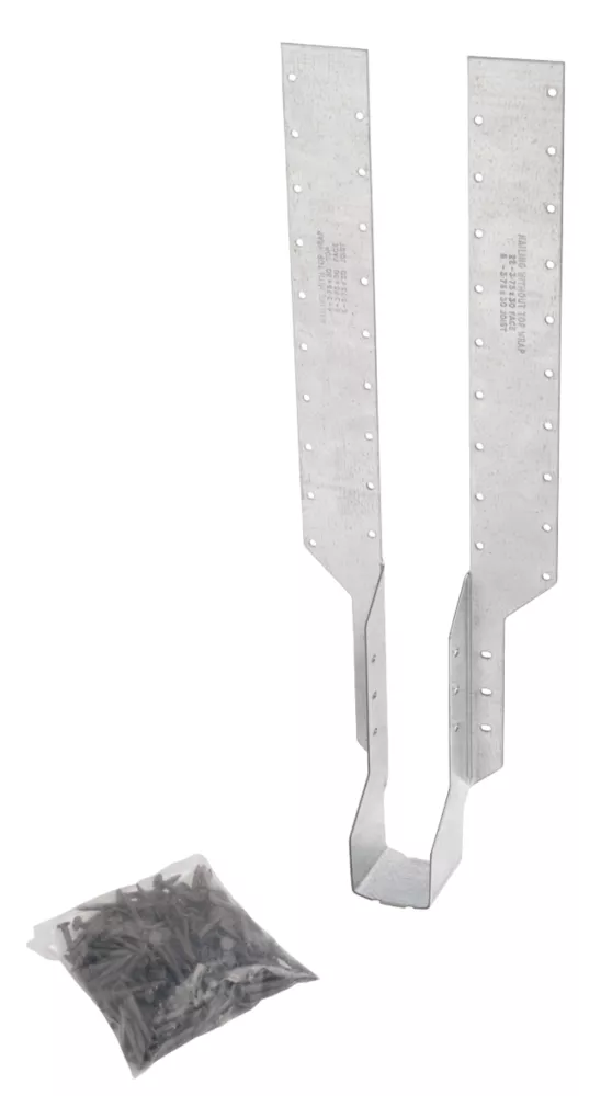 Universal, adjustable height strap for on-site adjustment with built-in location tabs to ensure accurate positioning. Speed prongs allow for quick, one-handed installation and square twist nail used throughout. Optional double shear nailing for greater strength. Location tab aids fast, accurate alignment with the nailing schedule stamped into the hanger. Ideal for face fix or wrap over installation and suspending solid timber from timber members. Supplied with 240 x square twist nails.