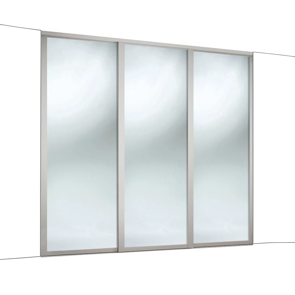 Spacepro Minimalist 2-Door Sliding Wardrobe Door Kit Silver Frame Mirror Panel 1512 X 2260mm