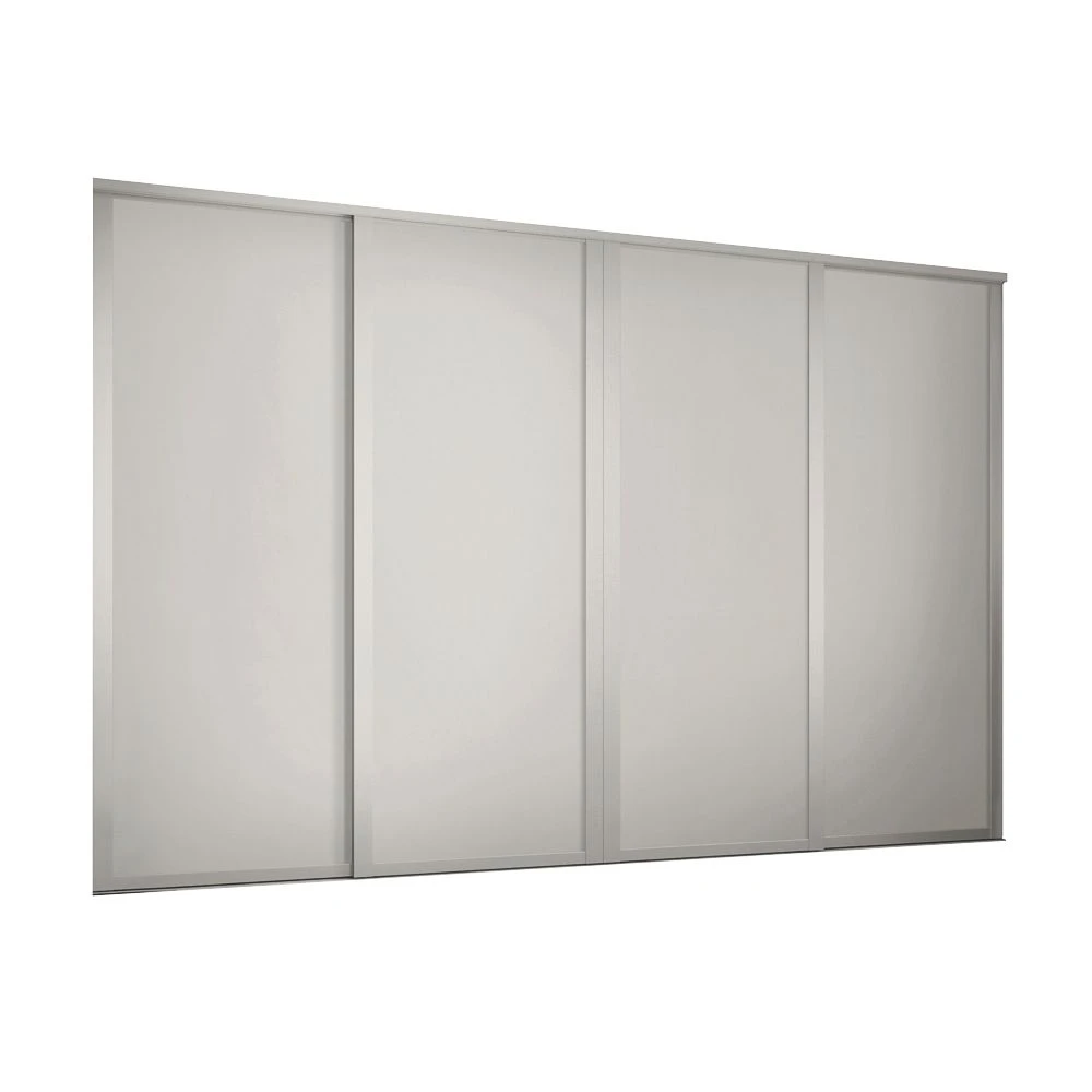 Non-mirrorred panels and dove grey frame with matching track set thats lightweight and smooth running. Ideal space-saving solution.
