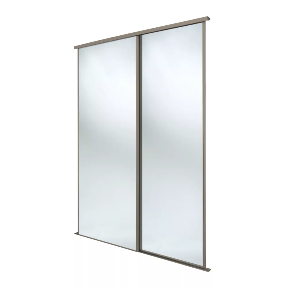 Spacepro Classic 2-Door Sliding Wardrobe Door Kit Stone Grey Frame Mirror Panel 1489 X 2260mm
