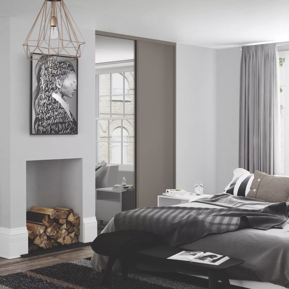 Space-saving, contemporary style sliding door kit. Easy to fit in just a few hours. May be combined with an interior storage system kit. Designed for single-sided use only and not intended for walk through applications. Can go from wall-to-wall or can go from a wall to an end panel.