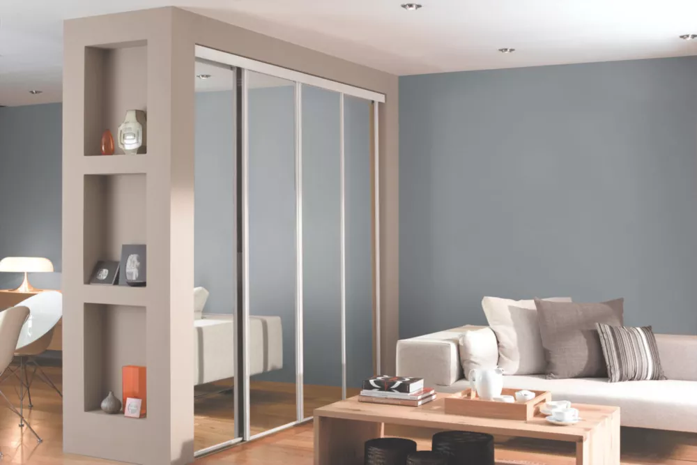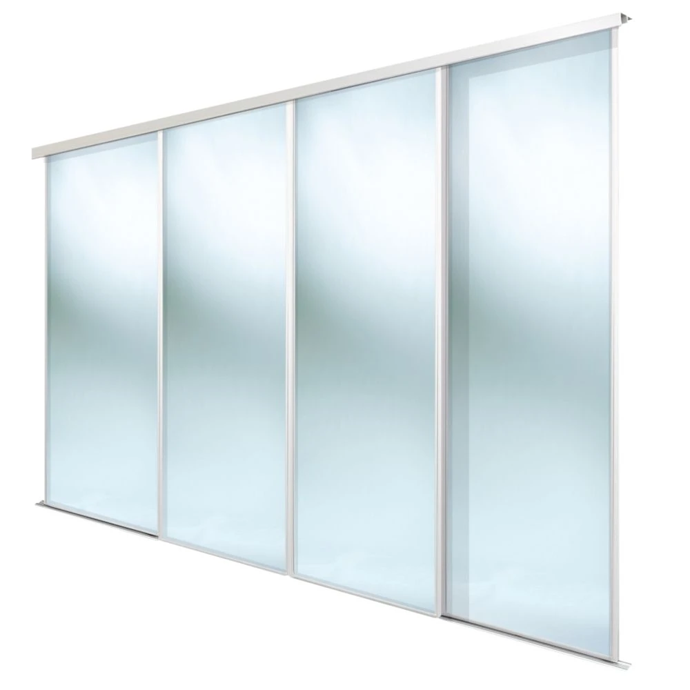 4 classic, white framed mirror, sliding wardrobe doors. Ready assembled to fit onto matching trackset supplied.