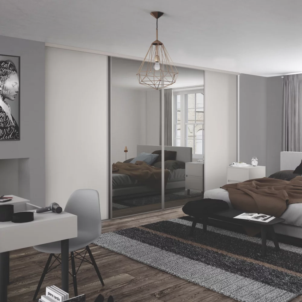 Spacepro Classic 4-Door Sliding Wardrobe Door Kit Cashmere Frame Cashmere / Mirror Panel 2370 X 2260mm