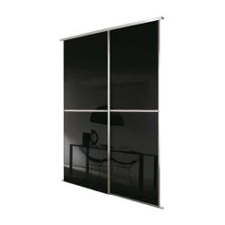 Spacepro Minimalist 2-Door Sliding Wardrobe Door Kit Silver Frame Black Glass Panel 1512 X 2260mm