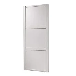 Shaker framed sliding wardrobe door with 3 white-effect panels. Designed for single-sided use only and not intended for walk through applications. Can go from wall to wall or can go from a wall to an end panel.
