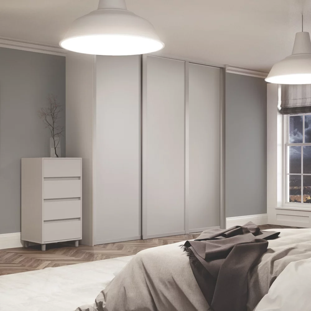 Spacepro Shaker 3-Door Sliding Wardrobe Door Kit Cashmere Frame Cashmere Panel 2136 X 2260mm - Image 3