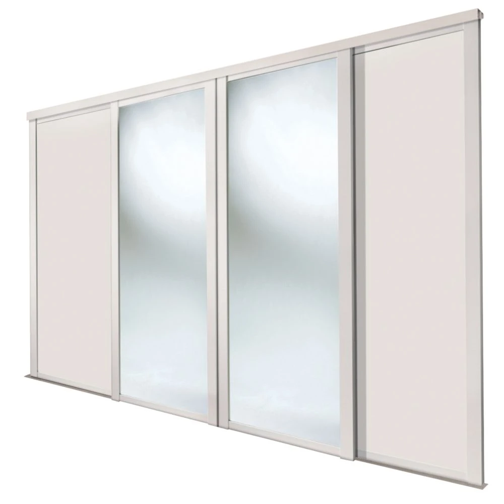 Spacepro Shaker 4-Door Sliding Wardrobe Door Kit Cashmere Frame Cashmere / Mirror Panel 2898 X 2260mm