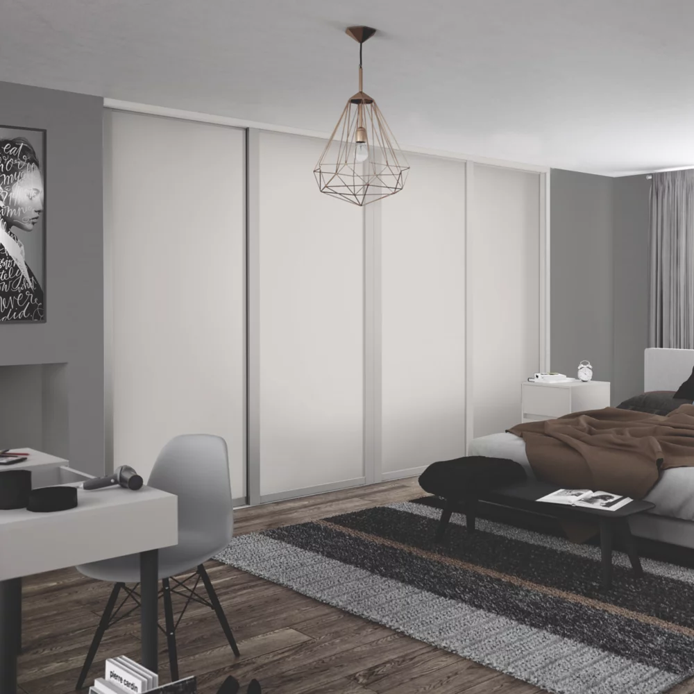 Spacepro Shaker 4-Door Sliding Wardrobe Door Kit Cashmere Frame Cashmere Panel 2898 X 2260mm