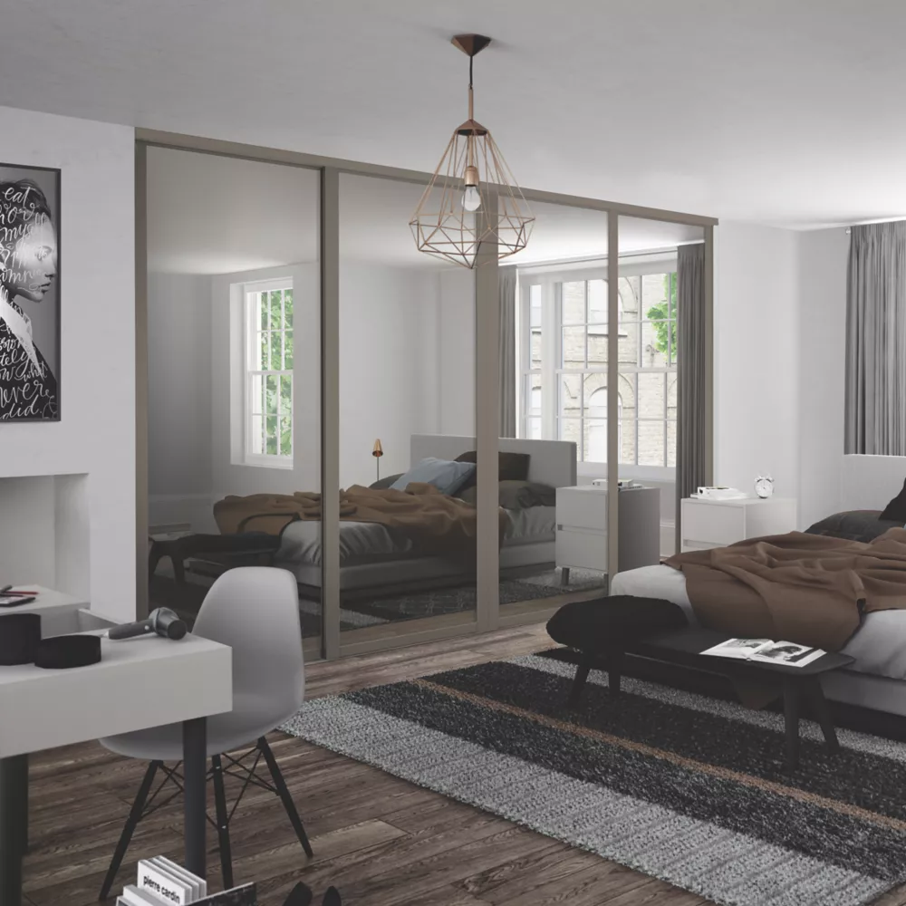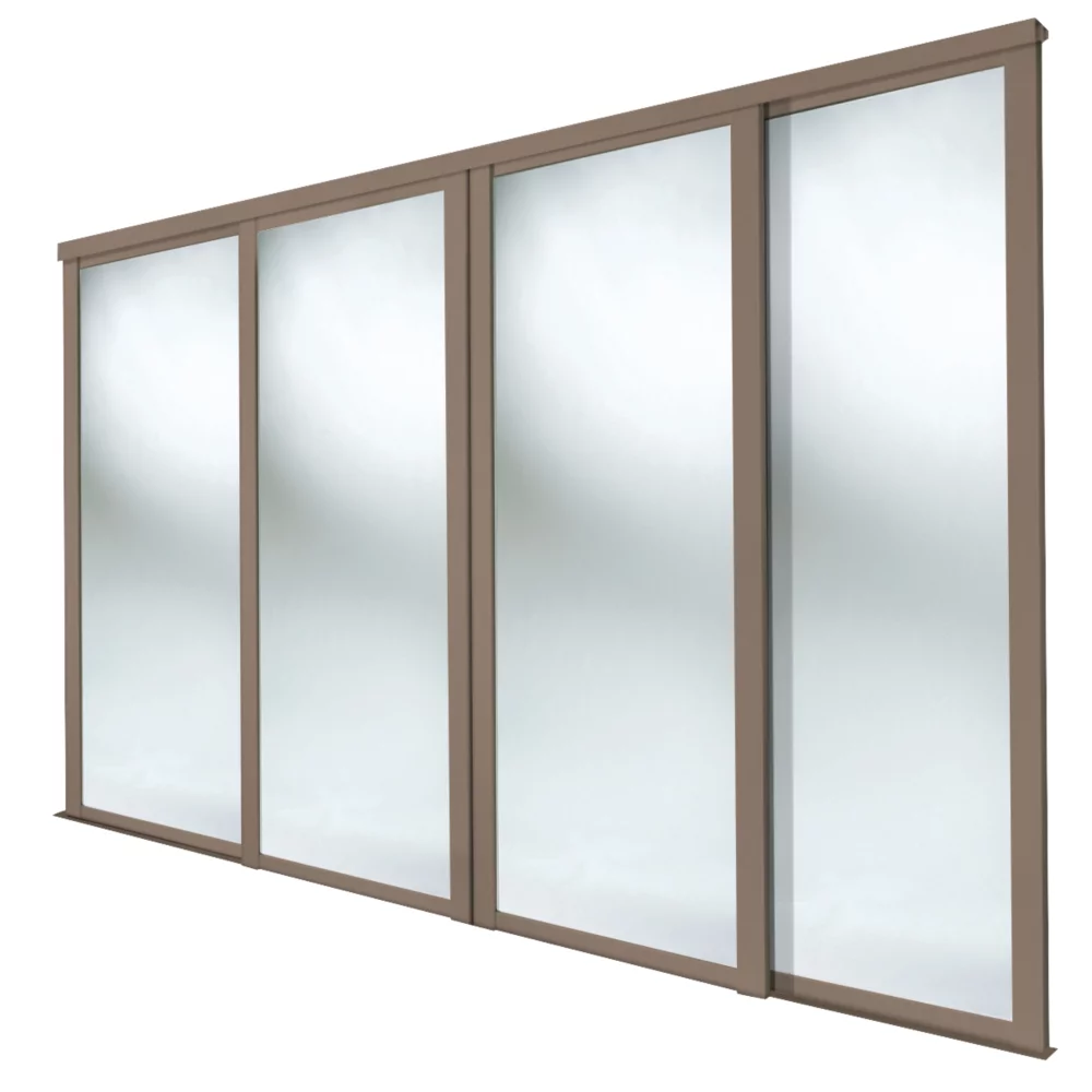 Spacepro Shaker 4-Door Sliding Wardrobe Door Kit Stone Grey Frame Mirror Panel 2290 X 2260mm