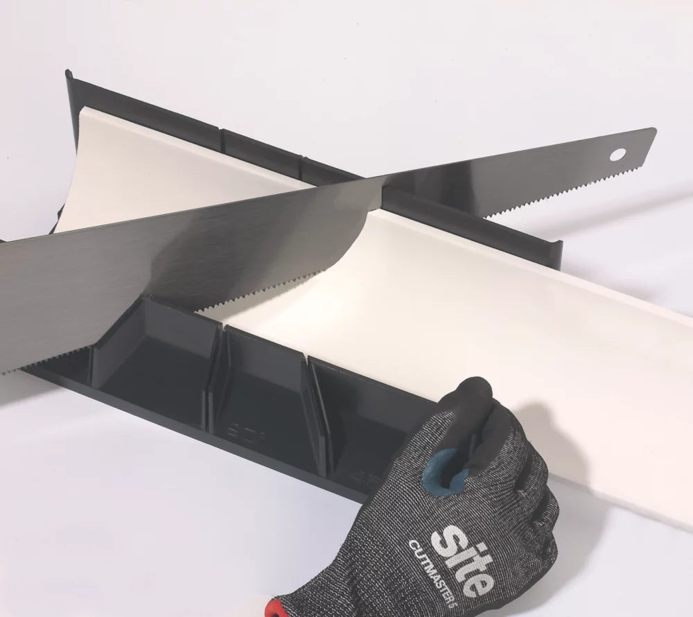 An easy to use sturdy plastic mitre box for cutting 45 and 90° angles. Fitted with stop inserts to achieve accurate angles. Includes 2 countersunk screw holes to fix to a workbench.