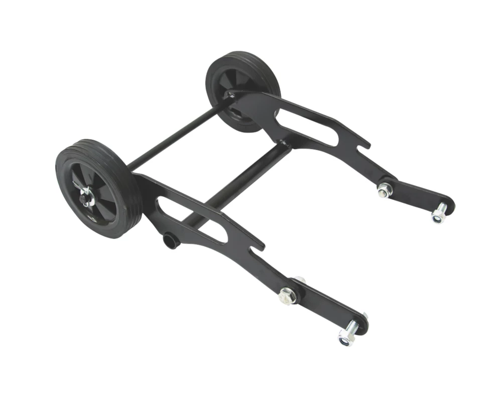 Folding wheel kit with solid heavy duty wheels to make transporting plate compactors easier.