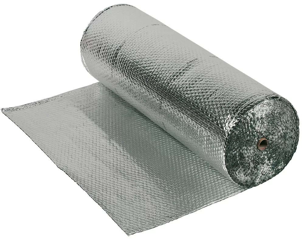 Easy to install, high performance aluminium bubble insulation membrane. Acts by trapping air within the bubble structure while creating low emissivity air spaces from foil-faced outer layers, enhancing overall thermal capabilities. Made with two layers of high-grade aluminium sheet for maximum thermal performance.